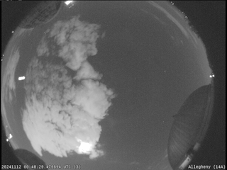 Over 200 eyewitnesses in Pennsylvania, Ohio, Michigan, New York, New Jersey, Maryland, District of Columbia, Virginia, West Virginia, Connecticut, Delaware, and the Canadian province of Ontario have filed reports on the American Meteor Society website of a bright fireball seen at 7:48 PM Eastern Standard Time on Monday, November 11 (12 November 00:48 UTC). The event was recorded by several cameras belonging to the Southern Ontario Meteor Network and the NASA Fireball Network, as well as some publicly accessible cameras as far away as Long Island. Analysis of the available data places first visibility of the meteor at an altitude of 50 miles above Ischua, New York. It moved southwest at 67,000 miles per hour for roughly 65 miles before disintegrating 23 miles above the forest near Endeavor, Pennsylvania.
